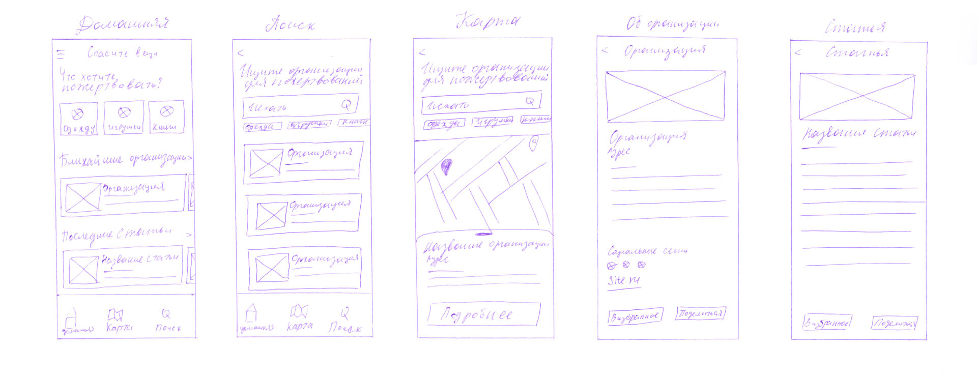 Я провела интервью, чтобы лучше понять пользователей, для которых я разрабатываю дизайн, и их потребности. Группа интервьюируемых была диверсифицирована и состояла из 8 человек разного пола, возраста, рода деятельности. Моей задачей было узнать, каким образом люди распоряжаются своим ненужны имуществом и как узнают об органиазациях, принимающих подобне пожертвования.